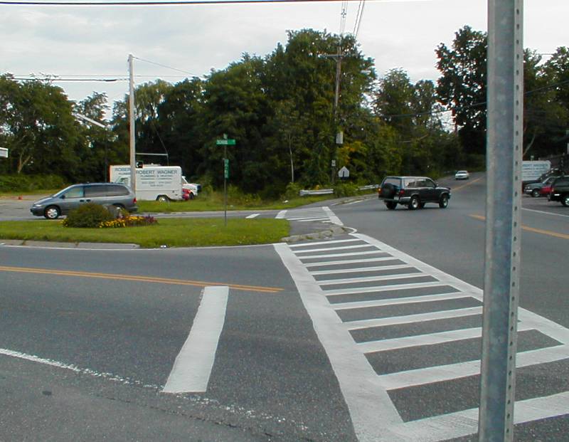 Let's head back from the northeast end of the CRT, at School and Central in Saxonville. The CRT starts at that street sign. The near end of the crosswalk aims right at it; we hope Framingham will line up the far side, as well.