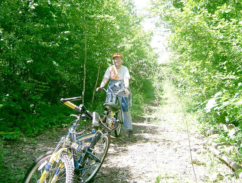 North of Route 30, the rails and ties were removed in 1991. Volunteers have cleared trees and brush, so the trail looks like this.